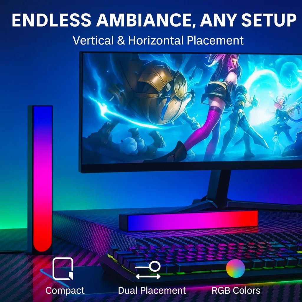 - 1 Pair 180° RGB Smart Rhythm Light – Transform your space with dynamic LED light bars featuring 16 million DIY colors and immersive rhythm effects.